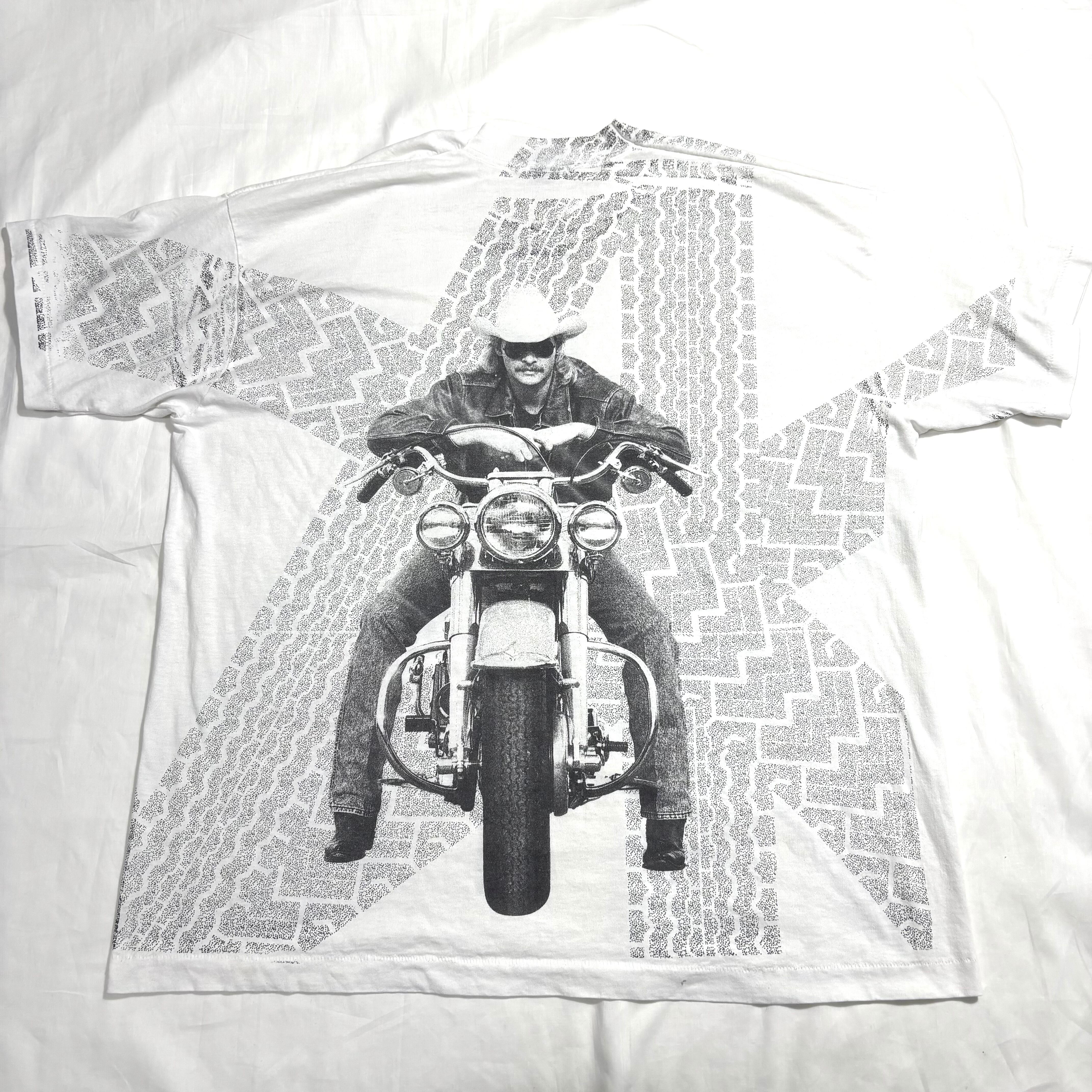 両面に大きくプリントされた90年代のカントリー歌手アランジャクソンのTシャツです。