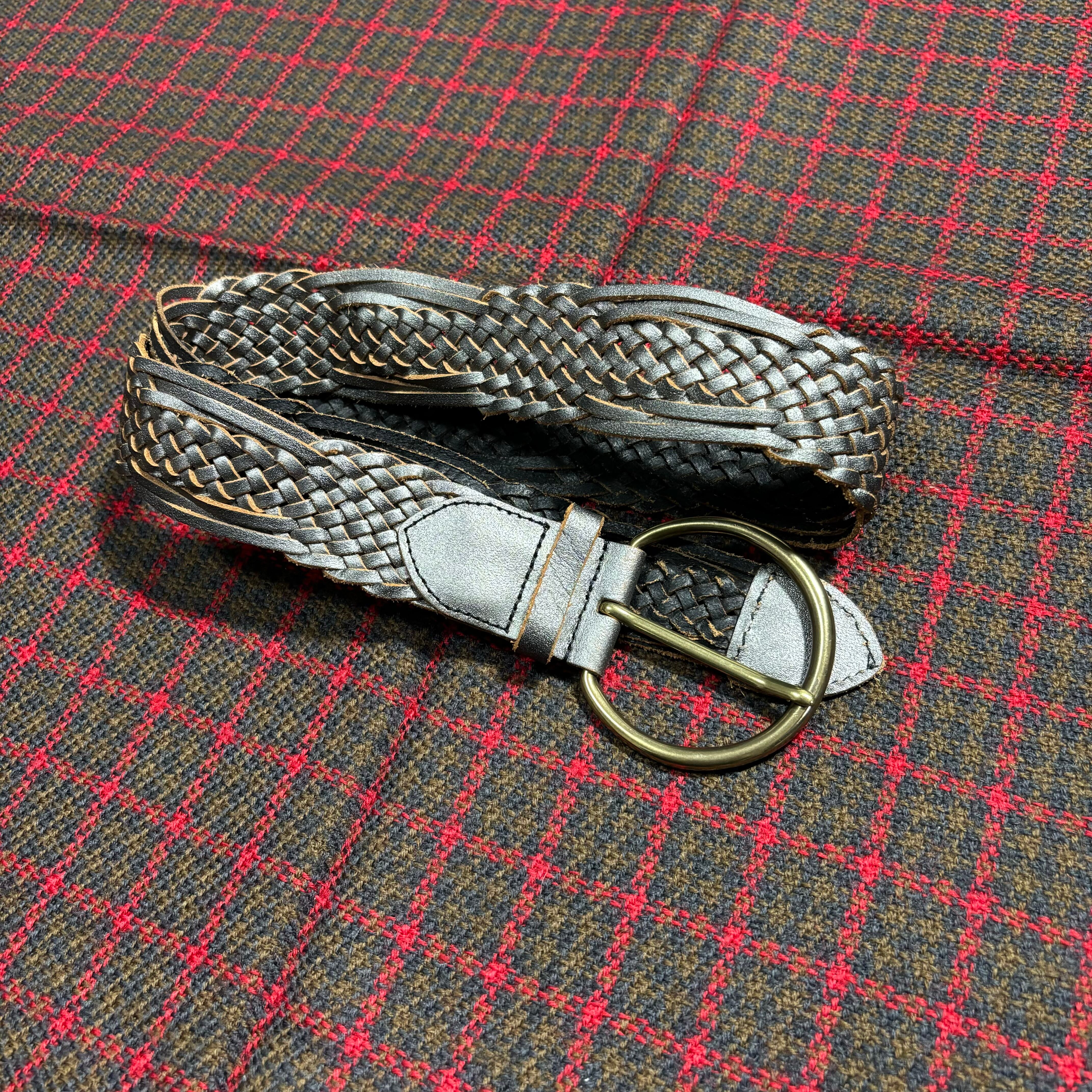 Gap 牛革 メッシュ レザー ベルト ゴールドバックル シルバーメタリック加工