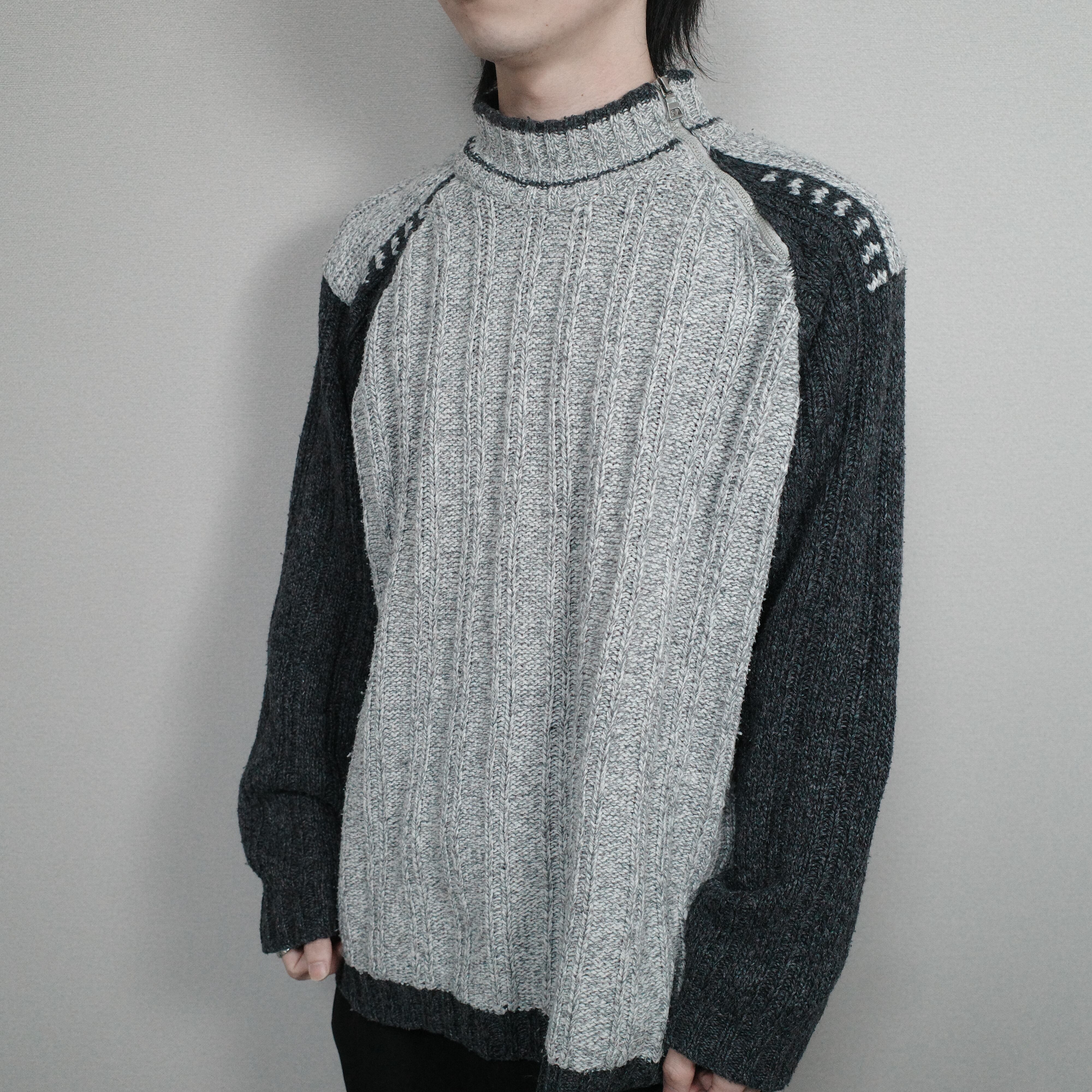 YI・HENG サイドZIP 編み込み 切り替え ハイネック ニット color.グレー size.XL