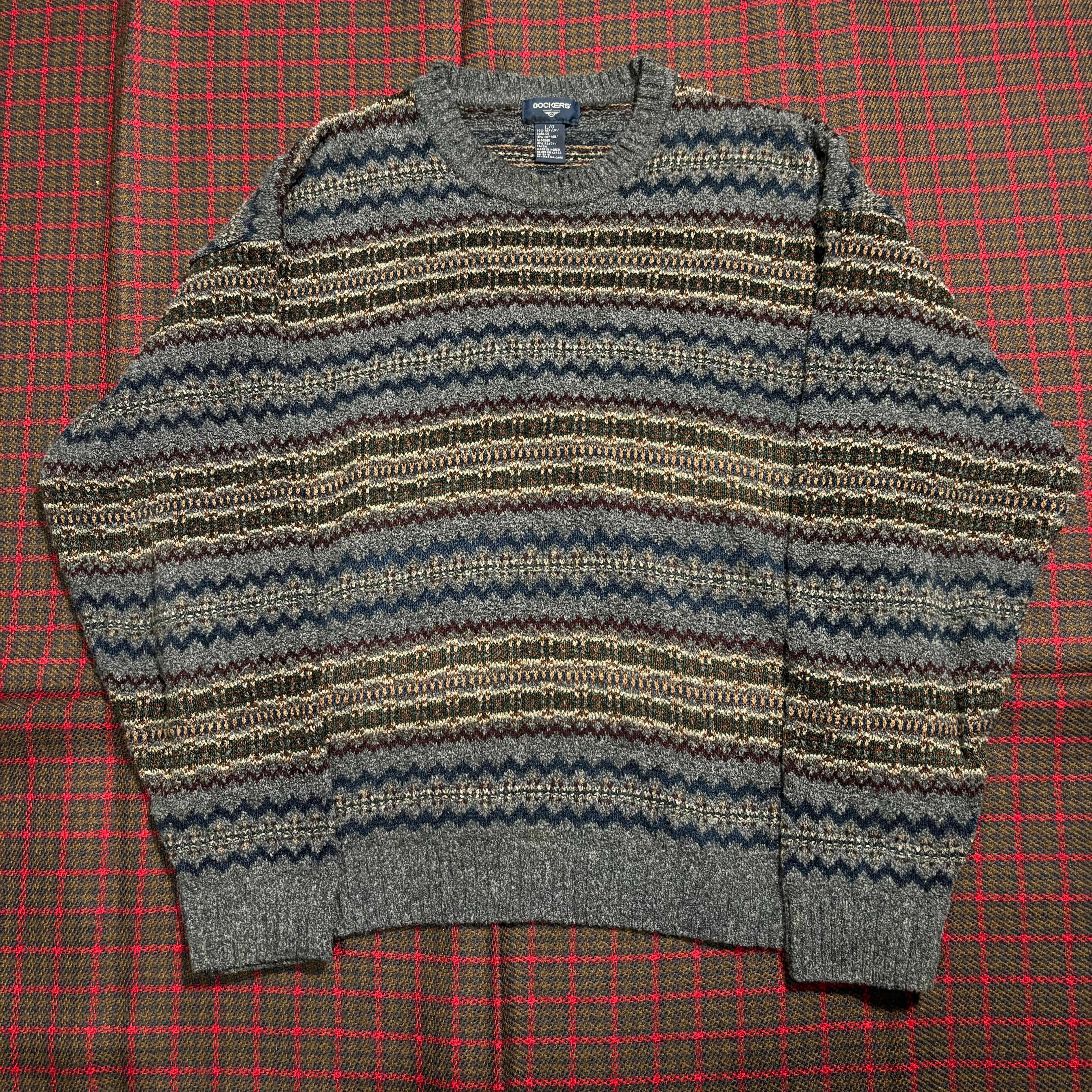 DOCKERS made in Korea 総柄 ノルディック柄 ボーダー ニット size.L