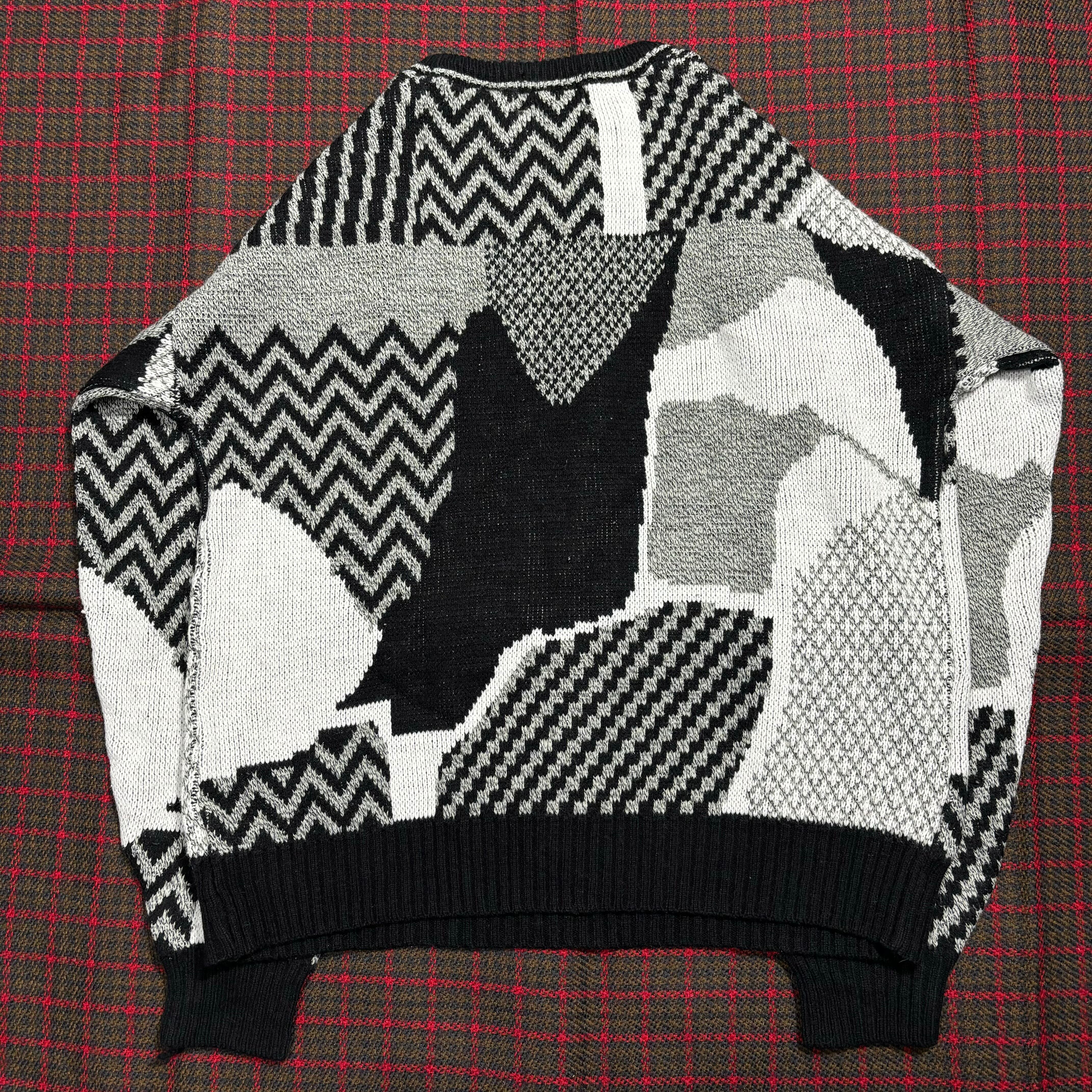 〜OAKTON LIMITED 総柄 アクリル ニット セーター 幾何学模様 color.ブラック ホワイト size.L